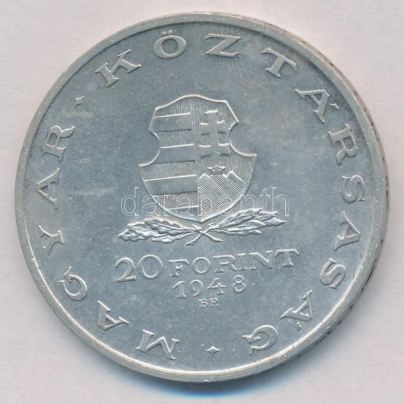 Beschreibung: 1948. 20Ft Ag "Táncsics" T:1-,2