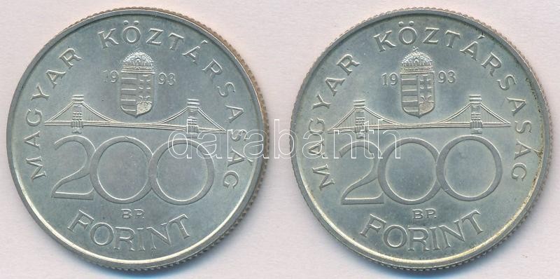 1993. 200Ft Ag "MNB" (2x) T:2 https://www.darabanth.com/de/323-Fernauktion/323.0/Numismatik/Ungarische-Munzen-und-Munzen-mit-ungarischem-Munzzeichen~2000007/1993-200Ft-Ag-MNB-2x-T2~II1792851