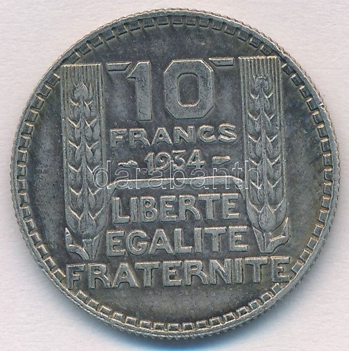 France 1934. 10 Francs Ag C... https://www.darabanth.com/de/323-Fernauktion/323.0/Numismatik/Weltweit-Munzen~2000012/Franciaorszag-1934-10Fr-Ag-T2-2-patina-France-1934-10-Francs-Ag-CXF-VF-patina~II1794218
