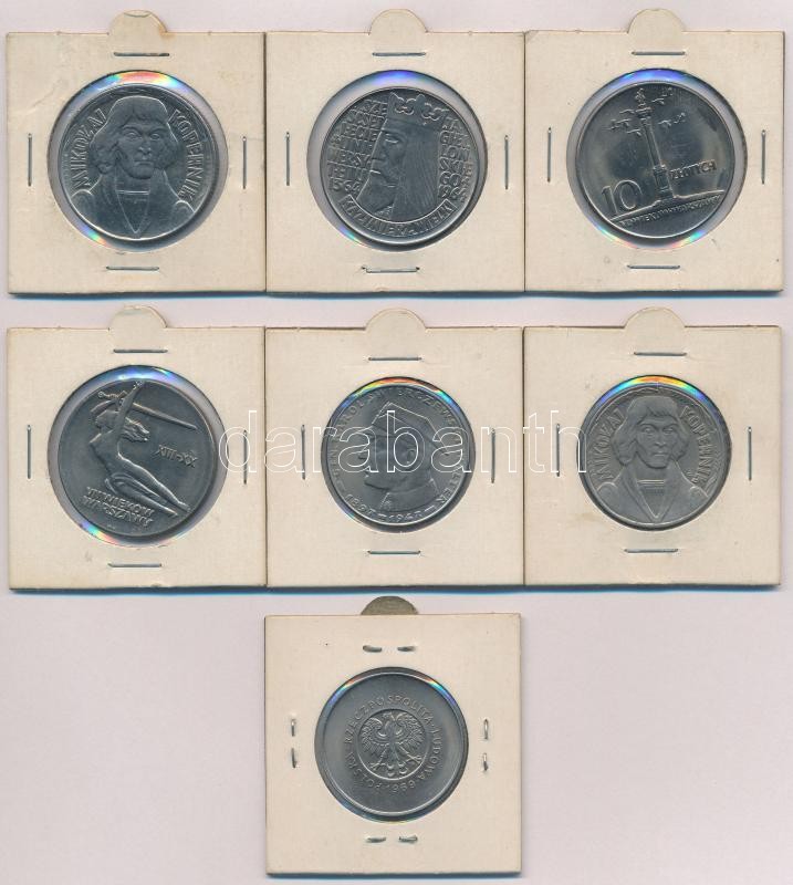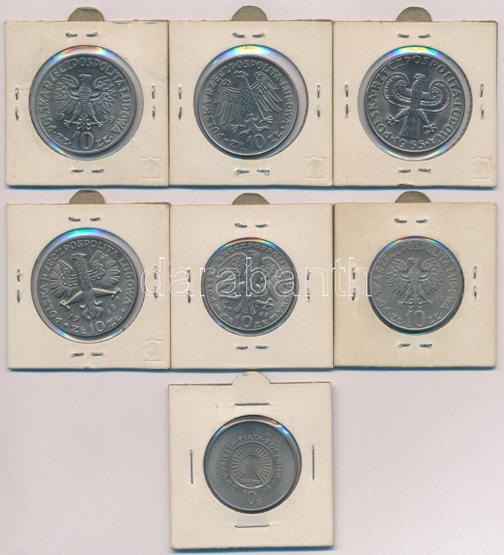 Lengyelország 1959-1969. 10Zl Cu-Ni (7xklf) forgalmi emlékérme T:1-,2 Poland 1959-1969. 10 Zlotych Cu-Ni (7xdiff) commemorative coins C:AU,XF