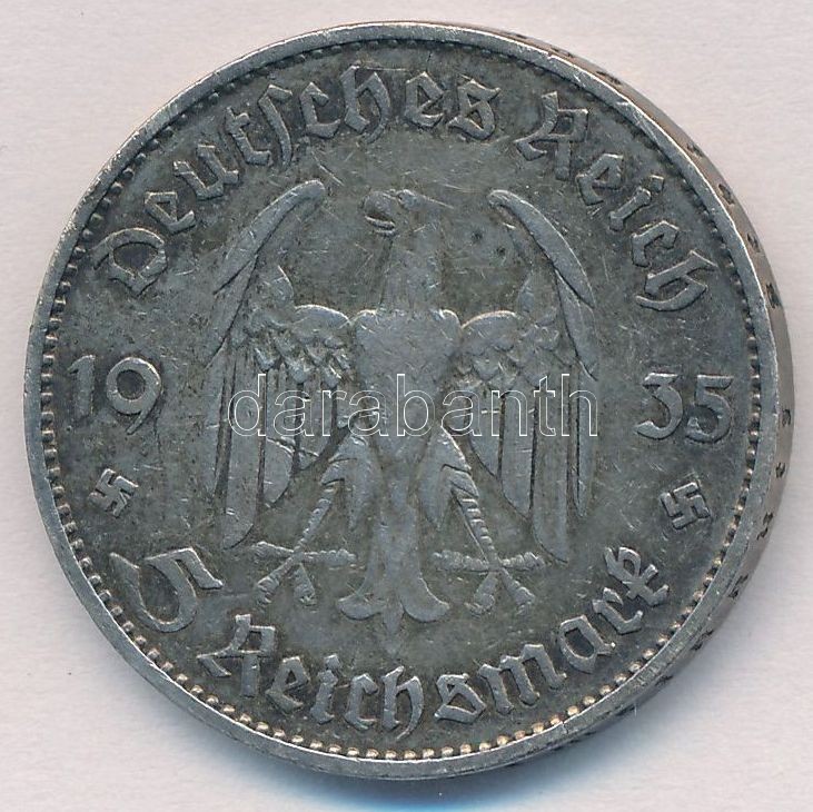 Német Harmadik Birodalom 1935D 5M Ag "Náci hatalom első évfordulója" T:2 patina