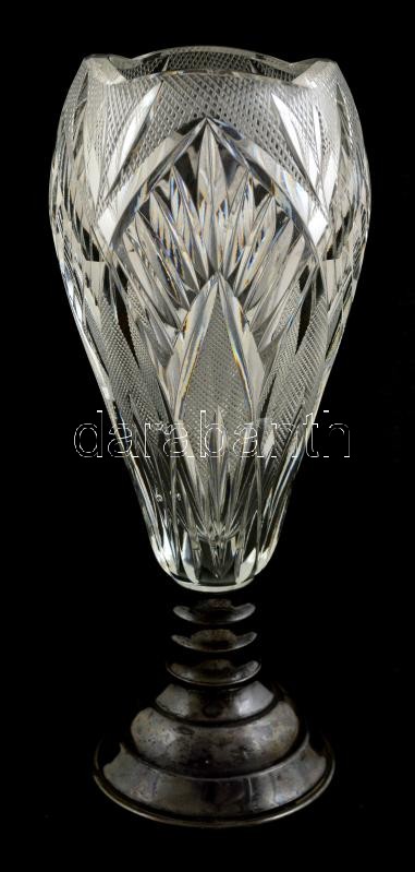 Beschreibung: Ólomkristály váza, ezüst (Ag) talppal, jelzett, hibátlan, m: 23,5 cm