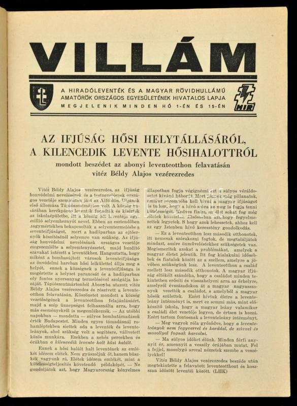 Beschreibung: 1944 a Villám, a híradó leventék és a MRAOE hivatalos lapja 1. évf. 3. és 8. lapszáma, érdekes írásokkal
