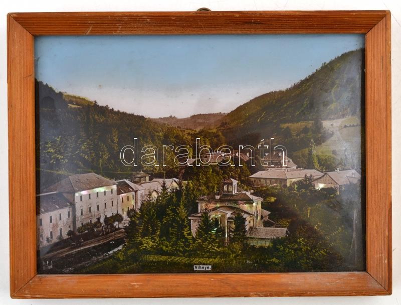 Beschreibung: cca 1900 Vihnye régi színes fotónyomat gyöngyház berakásokkal üvegezett keretben. 22x17 cm