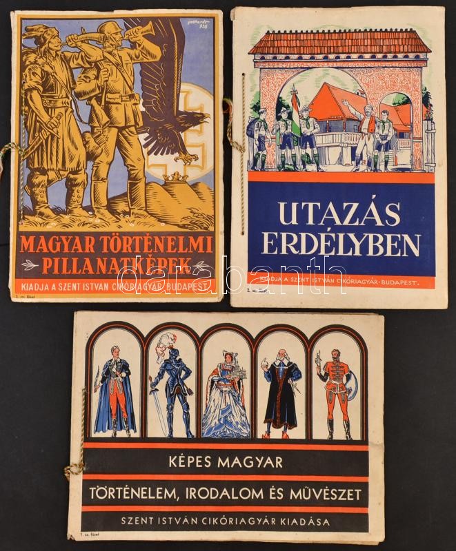 Beschreibung: cca 1935 Képes magyar történelem..., Utazás Erdélyben, Magyar történelmi pillanatképek. A Szent Istbán cikóriagyár gyűjtőképes gyűjtőfüzetei 3 db, kompletten az összes képpel, jó állapotban