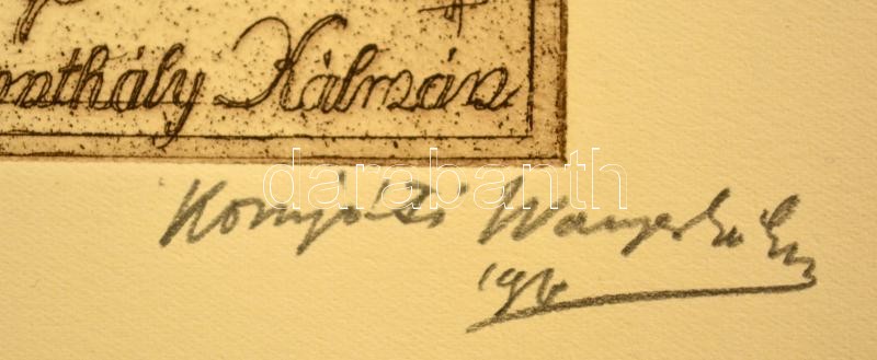 Beschreibung: Komjáti-Wanyerka Gyula (1894-1958): Erotikus ex libris Koronthály Kálmán. Rézkarc, papír, jelzett, lapméret 16x24cm
