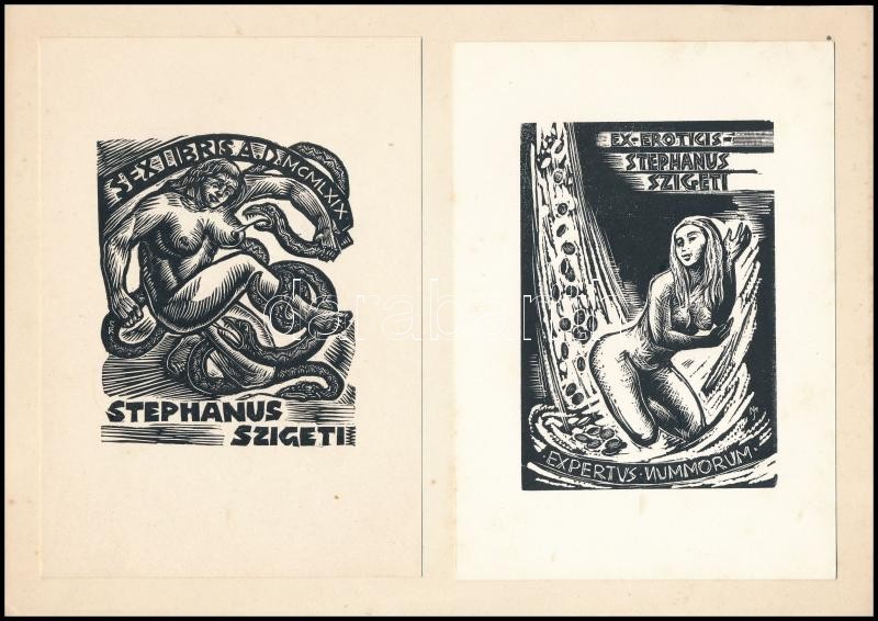 Sterbenz Károly (1901-1993) és Menyhárt József (1901-1976): Erotikus ex libris ( 2 db), fametszet, papír, jelzett a metszeten, 9×7 cm (2×)