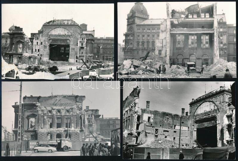 Beschreibung: 1965 Budapest, a Nemzeti Színház bontásának négy stációja, 4 db vintage fotó, 9x13 cm