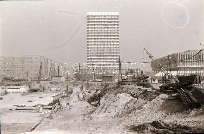 1983 Budapest, várostörténeti felvételek a Kacsóh Pongrác úti felüljáró és villamos vágányok építéséről, 33 db szabadon felhasználható vintage negatív, 24x36 mm