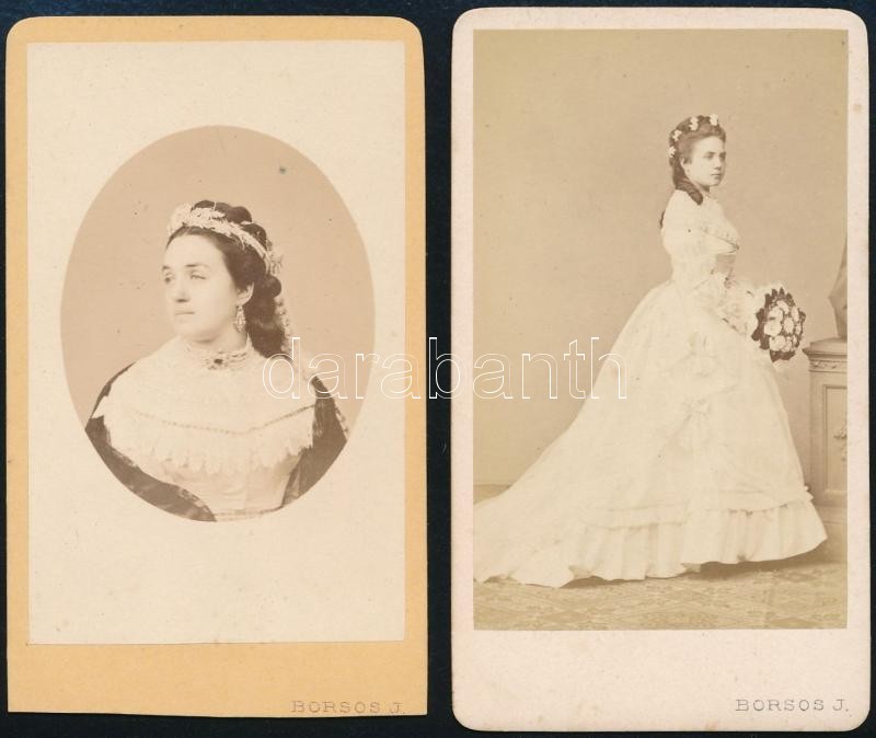 cca 1864 Borsos József cs. kir. udvari fényképész pesti műtermében készült 2 db vizitkártya méretű, vintage fotó (egymást követő nyilvántartási számmal!), 10x6 cm