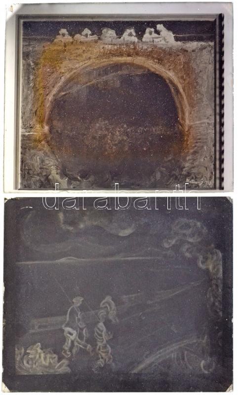 Beschreibung: cca 1930 Schreiber H. és Blattner G. aláírású festmények reprodukciós negatívja, 14 db vintage üveglemezen 15 mű, 12x16 cm