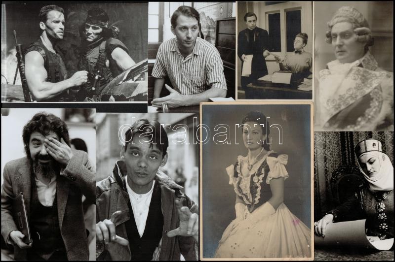 cca 1946-1980 Vegyes színész fotók: Karádi Katalin, Czímer József, Balikó Tamás, Regős János, Árkosi Árpád, stb., 42 db, 8,5×5,5 és 24×18 cm közötti méretekben