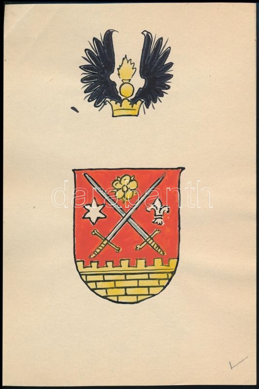 Fritz Junginger (?-?): Címerterv, vegyes technika, papír, jelzés nélkü... https://www.darabanth.com/de/324-Fernauktion/324.0/Andere-Sammelgebiete/Gemalde-und-Grafiken~2/Fritz-Junginger-Cimerterv-vegyes-technika-papir-jelzes-nelkul-15x10-cm~II1654568