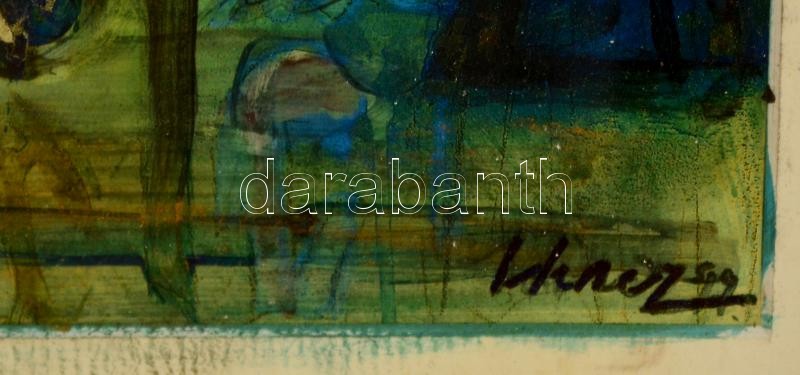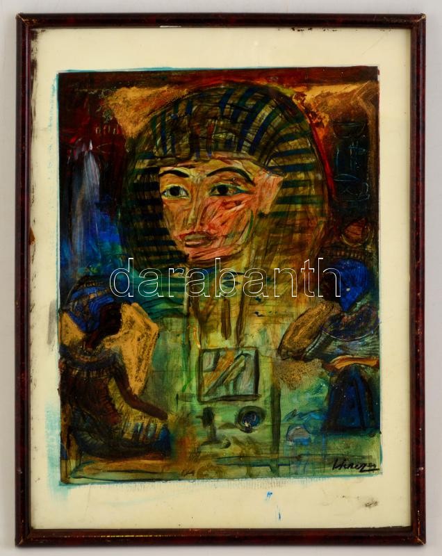 Beschreibung: Hincz jelzéssel: Egyiptomi emlékek. Vegyes technika, papír, üvegezett keretben, 38×29 cm