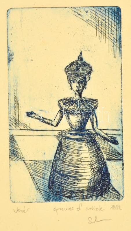 Olvashatatlan jelzéssel: Vezér. Színes rézkarc, papír, 13,5×8 cm https://www.darabanth.com/de/324-Fernauktion/324.0/Andere-Sammelgebiete/Gemalde-und-Grafiken~2/Olvashatatlan-jelzessel-Vezer-Szines-rezkarc-papir-13-5C3978-cm~II1800674