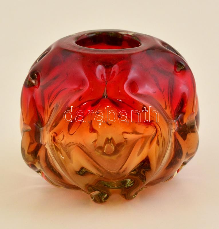 Anyagában színezett üveg váza, alján karcolásokkal, m: 9,5 cm, d: 12 c... https://www.darabanth.com/de/324-Fernauktion/324.0/Andere-Sammelgebiete/Glaser~9/Anyagaban-szinezett-uveg-vaza-aljan-karcolasokkal-m-9-5-cm-d-12-cm~II1799662