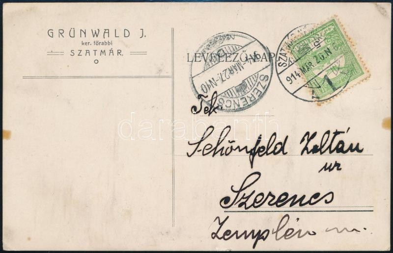 1914 Grünwald Juda (1849-1920) szatmári főrabbi jiddis nyelvű levelező... https://www.darabanth.com/de/324-Fernauktion/324.0/Andere-Sammelgebiete/Judaica~25/1914-Grunwald-Juda-1849-1920-szatmari-forabbi-jiddis-nyelvu-levelezolapja-Schonfeld-Zoltann~II1802747