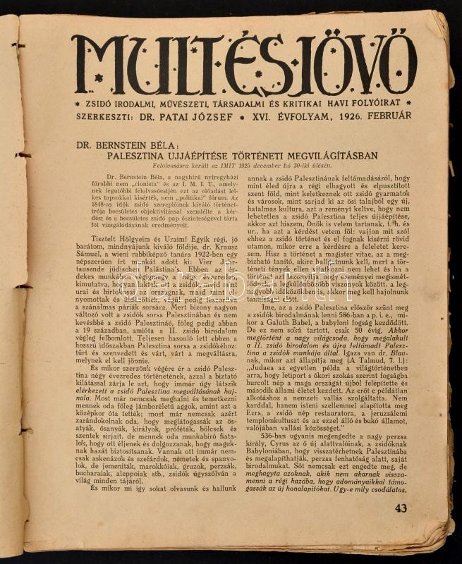 1926 Múlt és Jövő, zsidó irodalmi, művészeti, társadalmi és kritikai h... https://www.darabanth.com/de/324-Fernauktion/324.0/Andere-Sammelgebiete/Judaica~25/1926-Mult-es-Jovo-zsido-irodalmi-muveszeti-tarsadalmi-es-kritikai-havi-folyoirat-XVI-~II1801751
