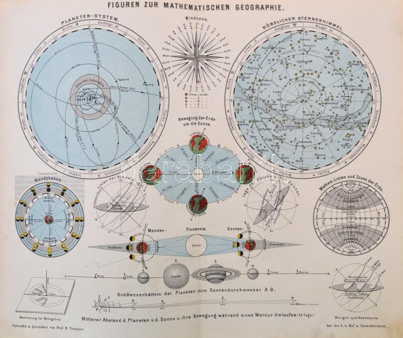 Beschreibung: R. Tramplers: Mittelschul-atlas. Wien, 1900, K.K. Hof und Staatsdruckerei, 2 p.+54 t. Kiadói aranyozott egészvászon-kötésben, kopott borítóval, sérült gerinccel, egy kijáró térképpel.