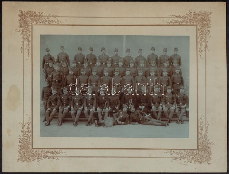 1911 Osztrák-magyar katonák csoportképe, díszes kartonra kasírozva, 15... https://www.darabanth.com/de/324-Fernauktion/324.0/Andere-Sammelgebiete/Militaria~28/1911-Osztrak-magyar-katonak-csoportkepe-diszes-kartonra-kasirozva-15x21-5-cm~II1804430