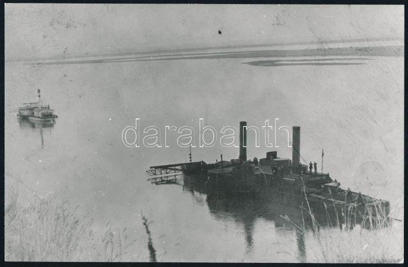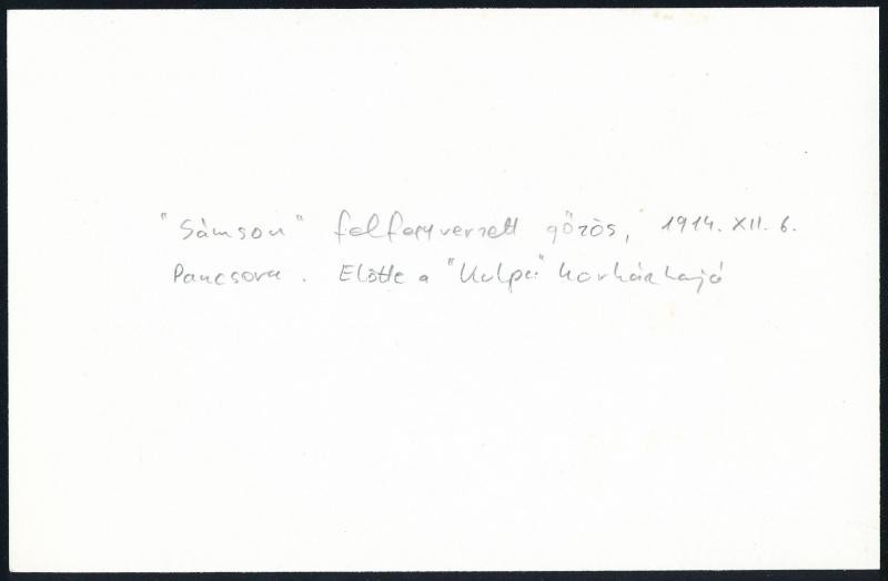 1914 Pancsova, A Sámson felfegyverzett gőzös (előtte Kulpa kórházhajó), a Dunai Flottila hajója, az 1980-as években eredeti negatívról előhívott másolat, hátoldalon feliratozva, 11×17 cm