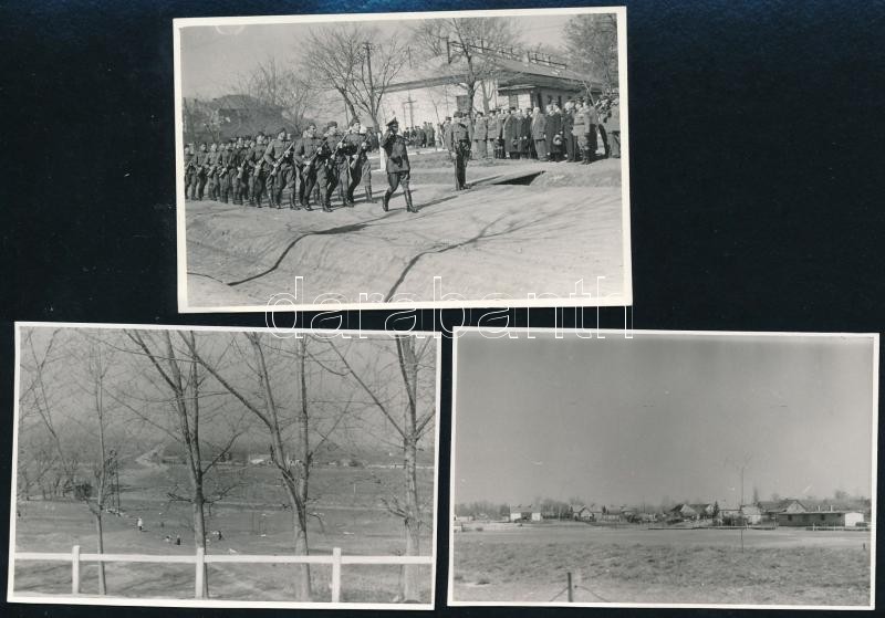 Beschreibung: 1961 Sükösd, Katonai felvonulás, focipálya, 3 db fotó, 6×9 cm