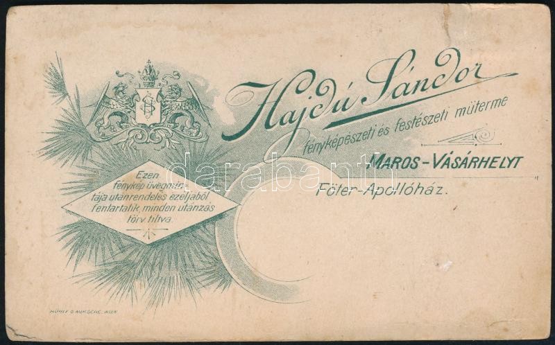 Beschreibung: cca 1900 Párbeszéd, keményhátú fotó Hajdú Sándor marosváráhelyi műterméből, 10,5×6,5 cm