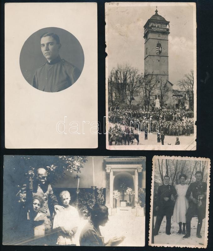 Beschreibung: cca 1915-1940 Katonákat ábrázoló fotók, közte a Felvidék felszabadulásának alkalmából kiadott fotólap, 6×9 és 14×9 cm