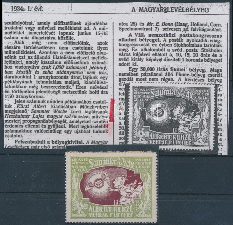 1924 Hesshaimer újságcikk másolat és a bélyege R! https://www.darabanth.com/de/324-Fernauktion/324.0/Andere-Sammelgebiete/Paraphilatelie~16/1924-Hesshaimer-ujsagcikk-masolat-es-a-belyege-R~II1700438