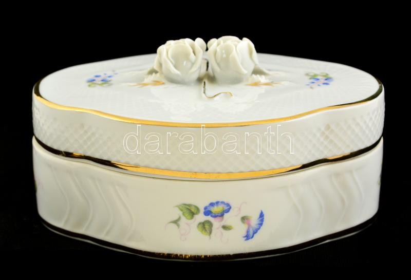 Hollóházi bonbonier, matricás, jelzett, kis kopásokkal, 15,5×11×8 cm https://www.darabanth.com/de/324-Fernauktion/324.0/Andere-Sammelgebiete/Porzellan~8/Hollohazi-bonbonier-matricas-jelzett-kis-kopasokkal-15-5C39711C3978-cm~II1803490