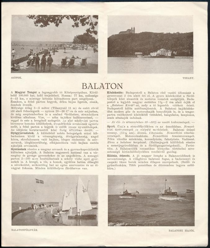 Beschreibung: cca 1930 Balaton, képes prospektus