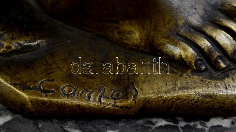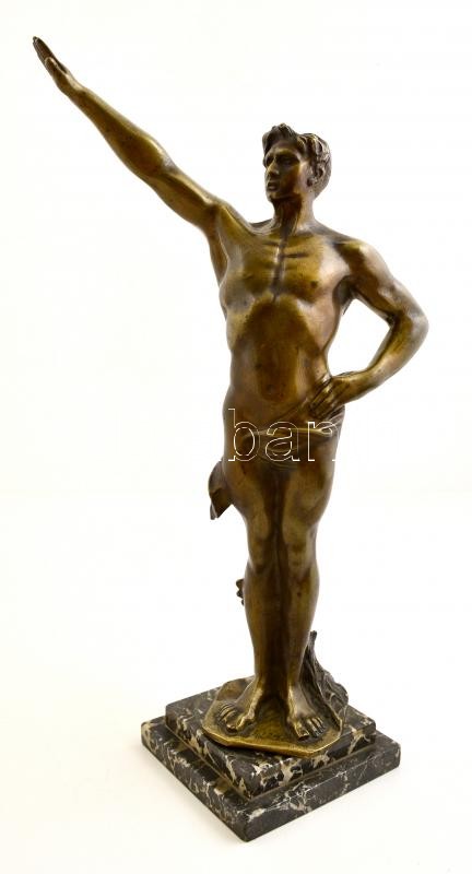 Beschreibung: Carlos jelzéssel: Ave Cézár. Bronz, márvány talapzaton, mozog a rögzítésnél, m: 48 cm
