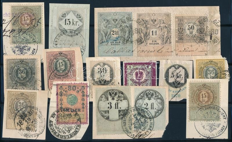 Beschreibung: 16 db osztrák okmánybélyeg 13 kivágáson