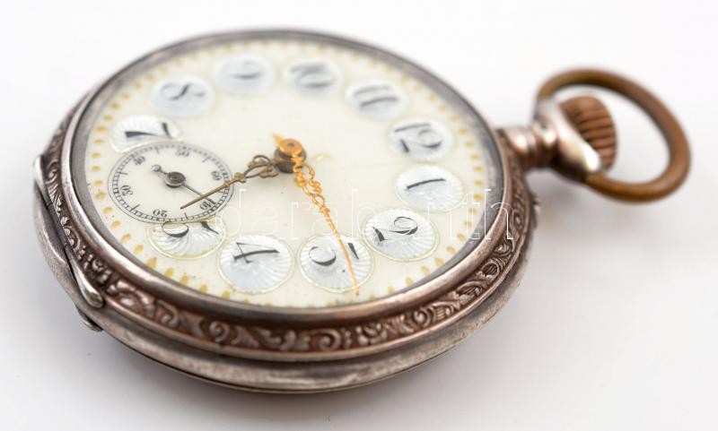 Remontoir dupla ezüst fedeles zsebóra, vésett tokkal, gyöngyházberaká... https://www.darabanth.com/de/324-Fernauktion/324.0/Andere-Sammelgebiete/Uhren~10/Remontoir-dupla-ezust-fedeles-zsebora-vesett-tokkal-gyongyhazberakasos-szamlappal-Mukod~II1804249