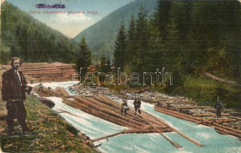 Kőrösmező, Jaszinya, Jasina, Yasinia; Gátvíz érkezésekor tutajosok imá... https://www.darabanth.com/de/324-Fernauktion/324.0/Ansichtskarten/Karpatenukraine~2000009/Korosmezo-Jaszinya-Jasina-Yasinia-Gatviz-erkezesekor-tutajosok-imaja-Benko-Miklos-kia~II1804629