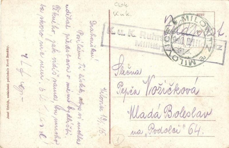 Militärbaraken in Milovic (Milowitz), Militärfeldbäckerei / Osztrák-magyar katonai tábor és laktanya, tábori konyha és sütöde Milovicében / Austro-Hungarian K.u.K. military base and barracks, field kitchen in Milovice + K.u.K. Ruhrspital Milowitz Militärpflege (EK)