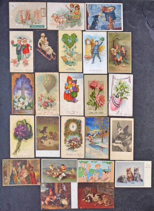 Beschreibung: 24 db RÉGI üdvözlőlap sok dombornyomott és litho lappal / 24 pre-1945 greeting art postcards with many embossed and litho pieces