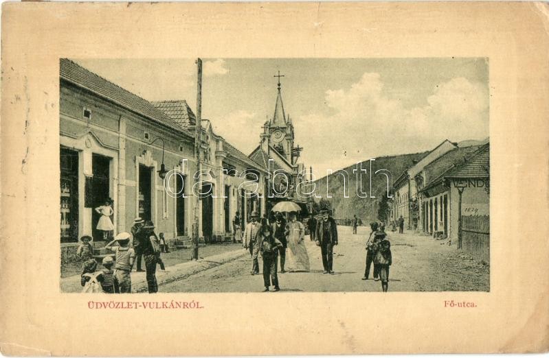 1913 Vulkán, Zsivadejvulkán, Vulcan; Fő utca, Ferenczi Emil üzlete, te... https://www.darabanth.com/de/324-Fernauktion/324.0/Ansichtskarten/Siebenburgen~2000007/1913-Vulkan-Zsivadejvulkan-Vulcan-Fo-utca-Ferenczi-Emil-uzlete-templom-vendgelo-WL-Bp~II1802190