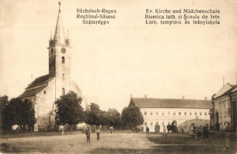 Szászrégen, Reghinul Sasesc, Reghin; Evangélikus templom, leányiskola.... https://www.darabanth.com/de/324-Fernauktion/324.0/Ansichtskarten/Siebenburgen~2000007/Szaszregen-Reghinul-Sasesc-Reghin-Evangelikus-templom-leanyiskola-Uj-Konyvkereskedes-kia~II1801520