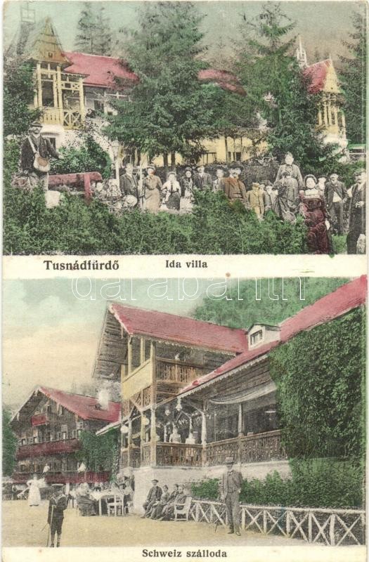 Tusnádfürdő, Baile Tusnad; Ida villa, Schweiz szálloda. Brunner Lajos ... https://www.darabanth.com/de/324-Fernauktion/324.0/Ansichtskarten/Siebenburgen~2000007/Tusnadfurdo-Baile-Tusnad-Ida-villa-Schweiz-szalloda-Brunner-Lajos-kiadasa-villa-hotel~II1803495