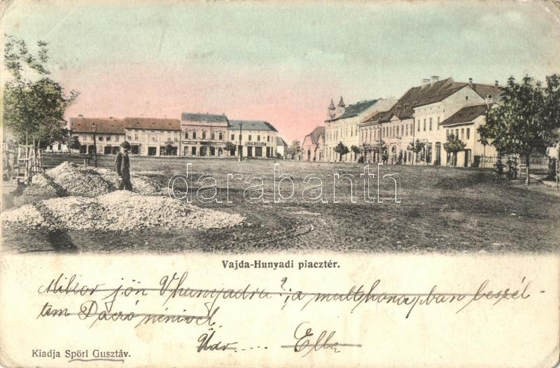 Beschreibung: Vajdahunyad, Hunedoara; Piac tér, Klein Adolf üzlete. Spörl Gusztáv kiadása / market square, shops (EK)