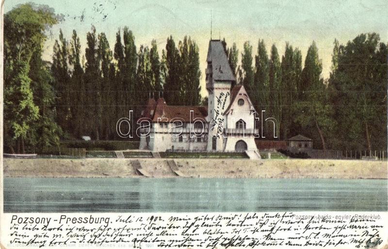 1902 Pozsony, Pressburg, Bratislava; Hajós-Egylet. Heliocolorkarte von... https://www.darabanth.com/de/324-Fernauktion/324.0/Ansichtskarten/Slowakei~2000008/1902-Pozsony-Pressburg-Bratislava-Hajos-Egylet-Heliocolorkarte-von-Ottmar-Zieher-Raderklub-~II1802568