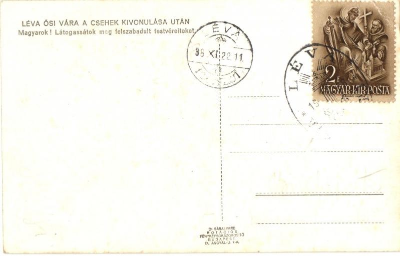 Léva, Levice; Léva ősi vára a csehek kivonulása után "Magyarok! Látogassátok meg felszabadult testvéreiteket!" / castle + 1938 Léva visszatért So. Stpl. (EK)