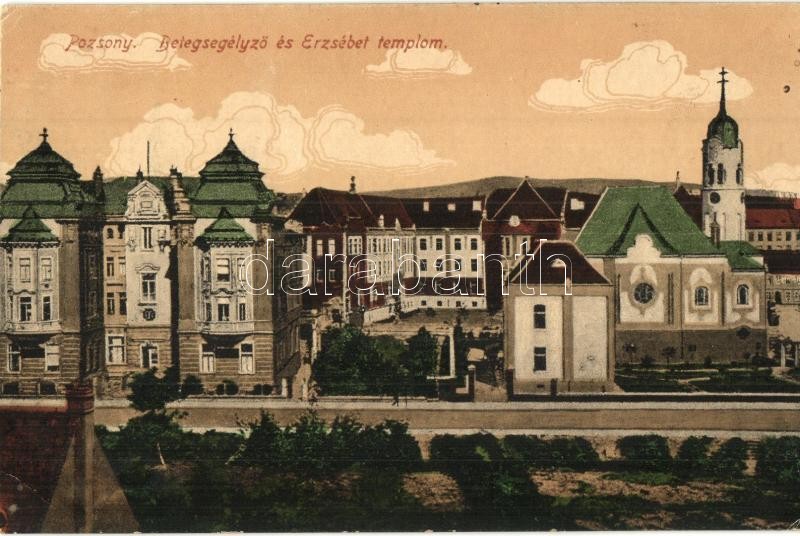 Pozsony, Pressburg, Bratislava; Betegsegélyező és Erzsébet templom / m... https://www.darabanth.com/de/324-Fernauktion/324.0/Ansichtskarten/Slowakei~2000008/Pozsony-Pressburg-Bratislava-Betegsegelyezo-es-Erzsebet-templom-medical-support-office-chu~II1801906