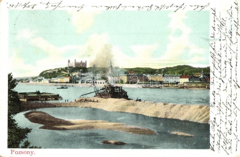 Pozsony, Pressburg, Bratislava; Kotróhajó, háttérben a vár / dredge, c... https://www.darabanth.com/de/324-Fernauktion/324.0/Ansichtskarten/Slowakei~2000008/Pozsony-Pressburg-Bratislava-Kotrohajo-hatterben-a-var-dredge-castle-EK~II1801922