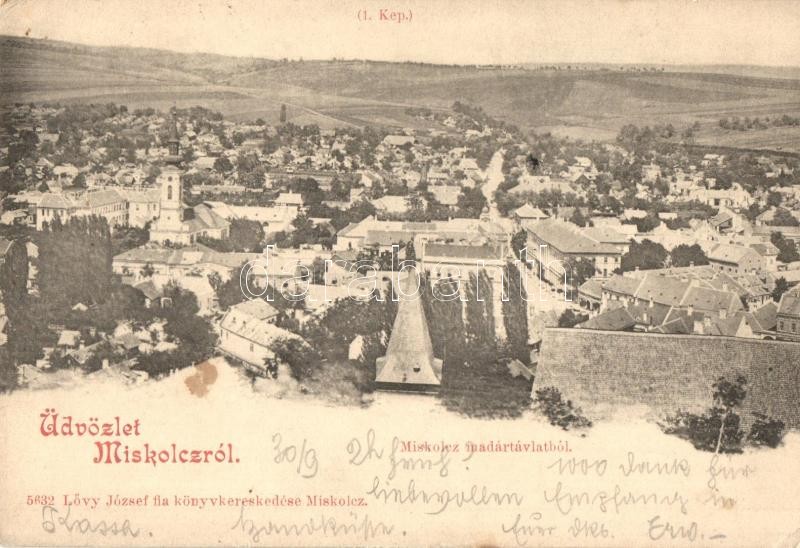 1899 Miskolc, látkép madártávlatból. Lővy József fia kiadása (EK) https://www.darabanth.com/de/324-Fernauktion/324.0/Ansichtskarten/Ungarn~2000006/1899-Miskolc-latkep-madartavlatbol-Lovy-Jozsef-fia-kiadasa-EK~II1798613