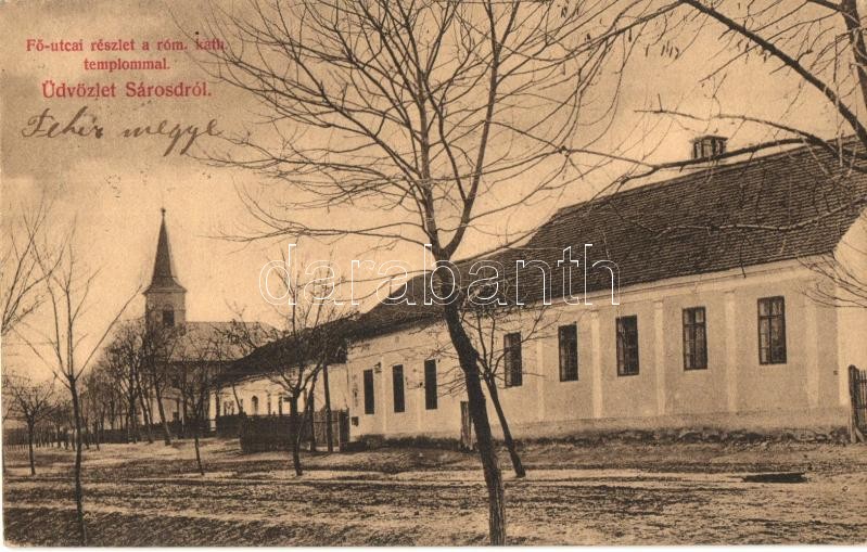 1912 Sárosd, Fő utca, Római katolikus templom https://www.darabanth.com/de/324-Fernauktion/324.0/Ansichtskarten/Ungarn~2000006/1912-Sarosd-Fo-utca-Romai-katolikus-templom~II1803481
