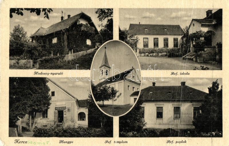 Beschreibung: 1944 Kerca, Kercaszomor; Hodossy nyaraló, Református templom, iskola és paplak, Hangya üzlet és saját kiadása
