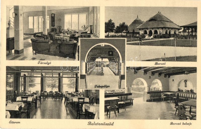 Balatonőszöd, M. kir. Ipari és Kereskedelmi Minisztérium Tisztviselői Jóléti Egyesületének üdülőtelepe: Társalgó, Borozó, Tekepálya, sport, Étterem, belsők