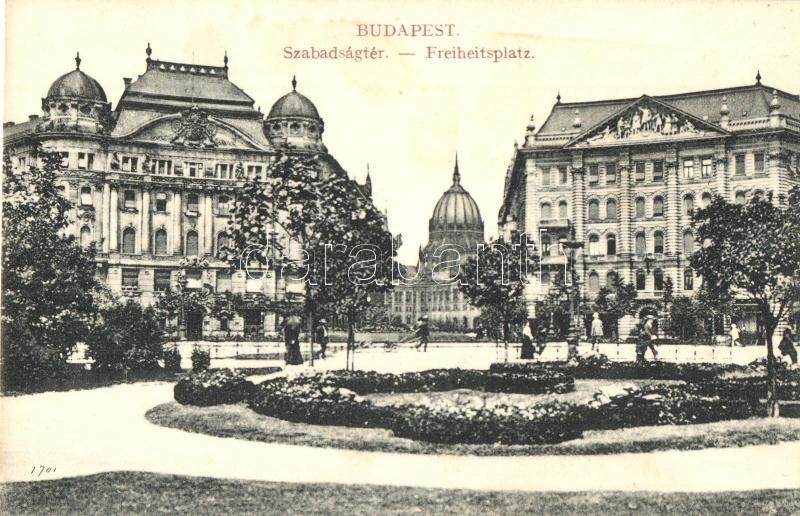 Budapest V. Szabadság tér, háttérben Országház https://www.darabanth.com/de/324-Fernauktion/324.0/Ansichtskarten/Ungarn~2000006/Budapest-V-Szabadsag-ter-hatterben-Orszaghaz~II1798646